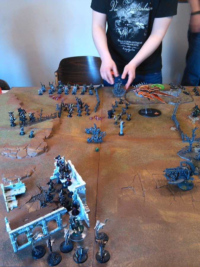 Heute fand wieder eine kurzweilige Partie Warhammer 40.000 in der Remise statt. Die Chaos Space Marines (Tobias) trafen auf die Orks (Stocki) und Necrons (Jesse). Hier einige Bilder: